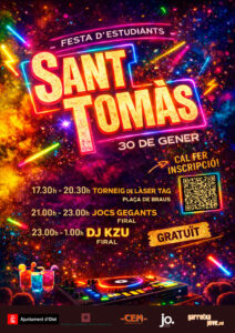 La festa dels estudiants per a joves d’ESO I POSTOBLIGATORI se celebrarà aquest any el divendres 30 de gener des de les 17.30 fins a la 1 de la nit.